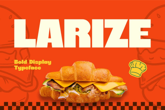 Instagram Font LARIZE also delivers remarkable versatility. Furthermore, its balanced proportions and smooth outlines make it suitable for both digital and printed media. Even so, the font maintains a warm and friendly character, which helps food brands appear more inviting and delicious. In addition, its bold display style strengthens brand identity, making products look premium, trendy, and easy to recognize. Consequently, designs become more engaging, especially when promoting burgers, burritos, hot dogs, coffee, or bakery items.