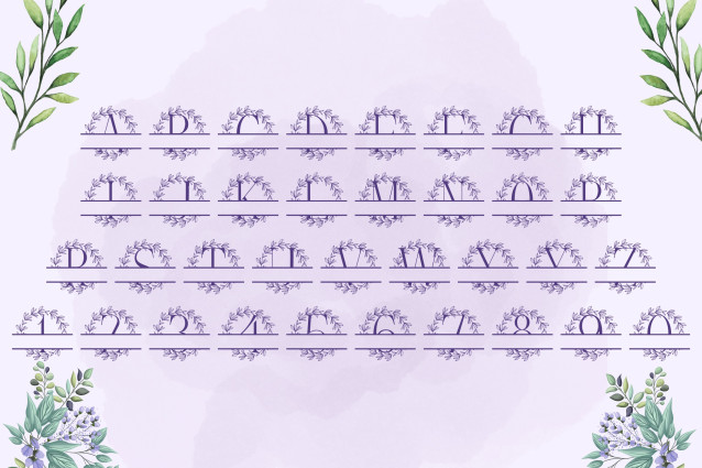 Lauressence Split Monogram Font is a graceful script monogram font with a centered split layout and romantic floral detailing. Each uppercase letter is styled with elegant flourishes and a blank center space, perfect for customizing with names, dates, or short phrases. Designed for weddings, branding, personalized gifts, and stationery, this font brings timeless charm and botanical elegance to every project.