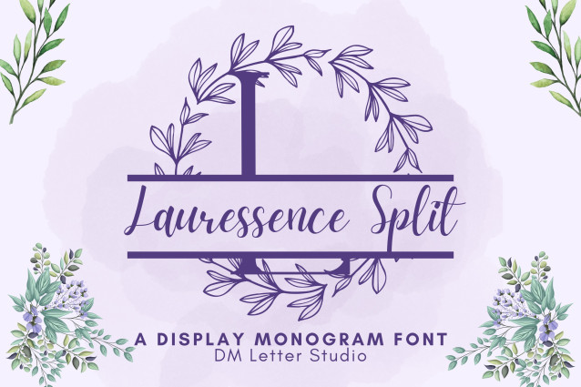 This font is used only for demos (Demo license). If you want to use this font for commercial use please contact: https://dmletterstudio.com/product/lauressence-split-monogram/