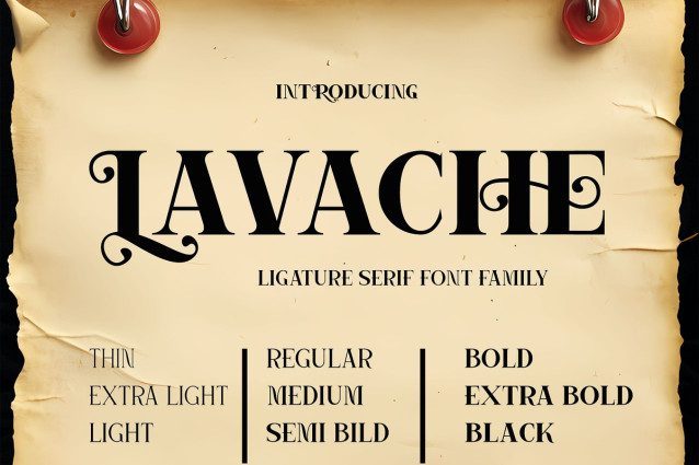 Lavache Font is a bold and stylish condensed serif family font, blending retro aesthetics with modern minimalism. Designed with uppercase and lowercase characters, Lavache features strict proportions, clean lines, and striking curves, giving your designs a bold personality.