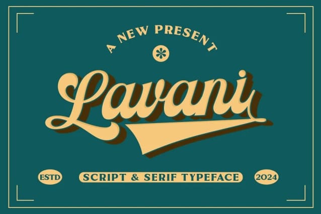 Lavani Font Duo – Script retro font styled like a logotype letter. created to help you design a logotype or writing style for your Brand or your client. it has extensive language support, including European and Asian Latin scripts.