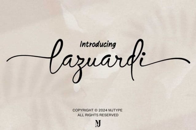 Lazuardi Script Font is a beautiful handwritten font ideal for logos, wedding stationery, photography watermarks, modern websites, and more. Fall in love with its incredibly distinct and timeless style, and use it to create spectacular designs!