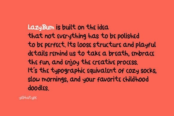 Every letter in LazyBum dances with energy, reflecting the spontaneity of handwritten notes and the charm of homemade creations. It’s approachable, imaginative, and full of light-hearted character.