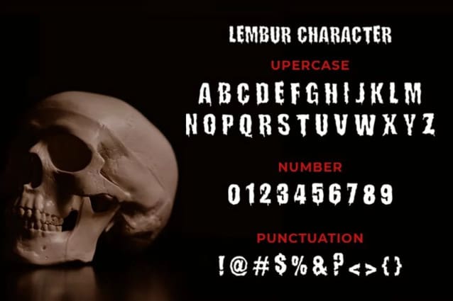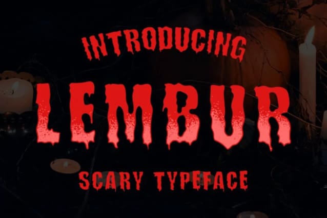 Lembur Display Font is a scary style font. design for a series of Halloween posters inspired by local brewing events, the goal being to achieve a medieval design look and feel; with stress and rough lines, comes the first of many seasons fonts.