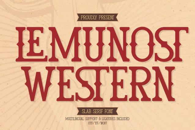 This font is made for personal use. Get the full version of the fonts if you want to use it for commercial purposes by purchasing the licenses here: https://creativemarket.com/Denustudios/279330069-Lemunost-Western-Slab-Serif-Font?u=fontlot123