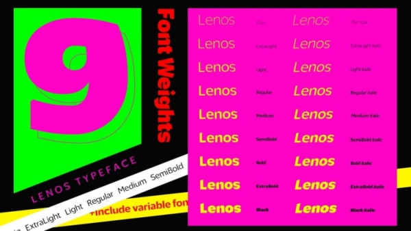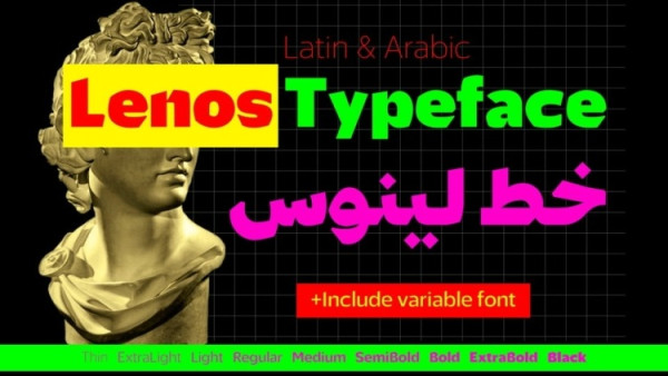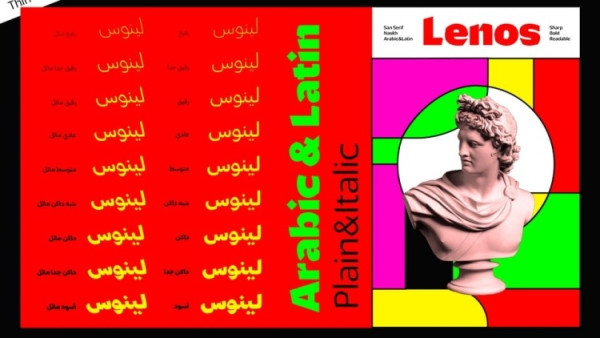 Lenos Font is the modern version of the old Arabic script “Naskh”. A robust modern typeface that combines the sans and the “Naskh” into one strong type family with 9 different weights starting from thin to black with its all italic options.