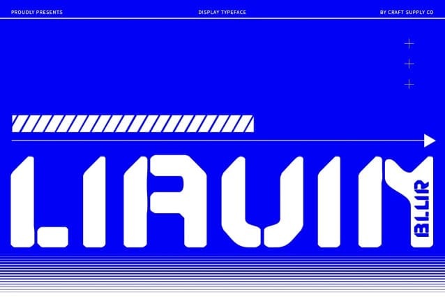 Perfect for Conveying Strength and Functionality Whether for branding, signage, or promotional materials, Liavin Blur delivers a powerful and functional aesthetic. Its distinctive stencil design and bold presence make it an excellent choice for projects that need to project strength and a practical edge.
