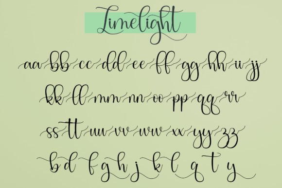 Limelight Font is a unique and elegant handwritten font. It looks beautiful on a variety of designs requiring a personalized style. This font is PUA encoded, which means you can access all of the glyphs and swashes with ease!