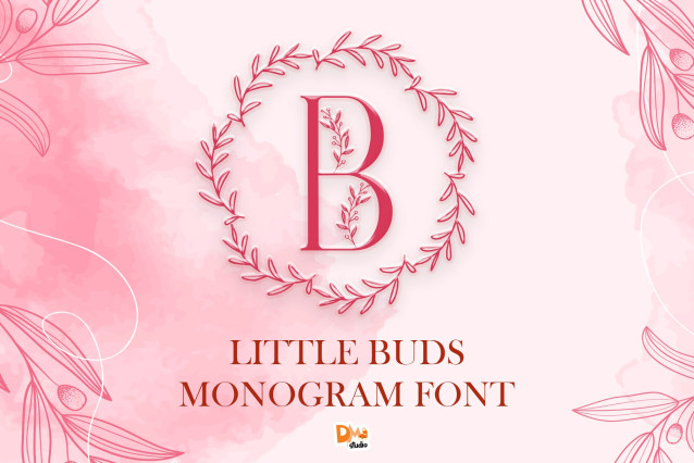 Little Buds Monogram Wreath is a beautifully styled font that captures the grace of budding flowers and elegant curves, perfect for monograms, personal branding, event materials, and seasonal designs. This font blends natural whimsy with gentle structure, making it ideal for baby showers, weddings, feminine products, and charming DIY crafts.