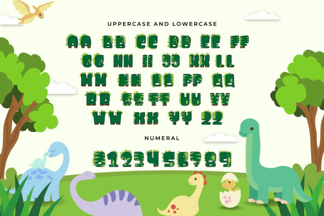 Little Dino Decorative Kids Font was created to bring a cute and fun impression to anyone who sees it. This is in line with the characteristics of letters that are unique, have various accents, and are funny. Each letter in this font is a little difficult to distinguish. People who read texts using this type of font need to make a lot of effort to read and understand them. As the name suggests, Little Dino Decorative Kids Font has a shape that depicts dinosaurs. This font is suitable for children’s equipment, such as clothing item designs, because its shape is simple and cute. This type of font is suitable for printing in large sizes and looks good when viewed up close. For people who like a cheerful and cute feel, Little Dino Decorative Kids Font will be a good choice. This font is also suitable for use as a digital font, such as in videos, film titles, and displaying quotes on social media. Our collection of Display fonts are compatible for use as; Figma Fonts, Canva Fonts, Freepik Fonts, and Adobe Fonts. They also function as Windows Fonts and Apple Fonts. For your social media needs, you can use and install fonts in our Espot & Futuristic font collection to use as Instagram Fonts, Facebook Fonts, and Twitter Fonts.