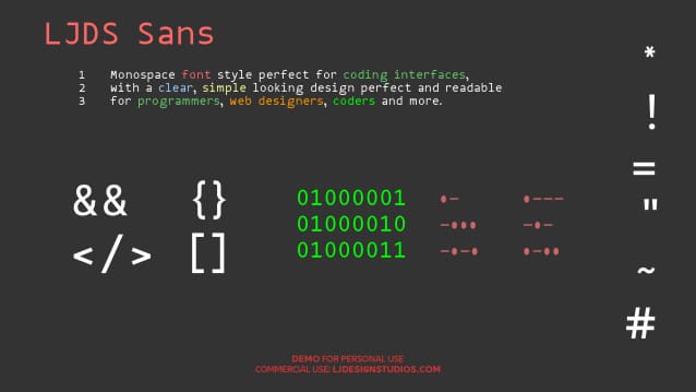 LJDS Sans Font, is a typographic font constructed based on large fonts with this style. The mission is that LJ Design Studios could have its own version of this style with adjustments that make it different to use in specific corporate purposes