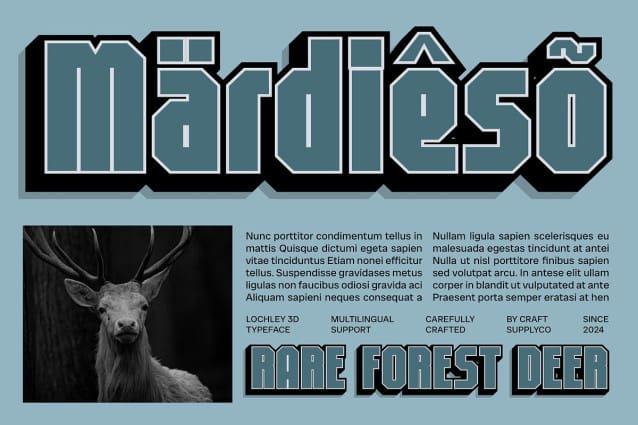 Ideal for Branding and Graphic Projects Lochley 3D is perfectly suited for a wide range of design applications, including branding, posters, and other graphic elements that require standout appeal. Its bold and industrial characteristics make it an excellent choice for projects aiming for a modern and professional look, whether for corporate identities, promotional materials, or impactful signage. This font ensures that your brand makes a memorable impression, resonating with audiences on multiple levels.