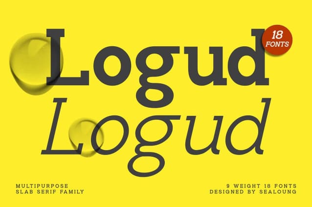 Logud Font Family is made for personal use. Get the full version of the fonts if you want to use it for commercial purposes by purchasing the licenses here: https://creativemarket.com/Sealoungfonts/266594679-Logud-Slab-Serif-Family-18-Fonts?u=fontlot123