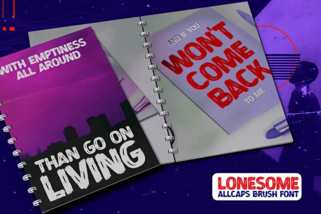Lonesome Brush Font is a All Caps Brush Font that is written casually and quickly. Letters are made with brushes on Procreate. Then crafted carefully drawn into vector format. That is why Lonesome has Stylish and strong characteristic more natural look to your text with a more modern look to your text.