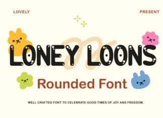Loney Loons Font, a modern, playful and unique font that creates contemporary look with artistic flair and balances readability. The style features smooth, rounded edges combined with holes within the letterforms. The rounded curves add a soft, approachable feel, while the holes introduce a sense of the edginess, making it perfect for creative projects, branding or eye-catching headlines.