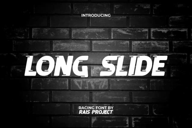 Long Slide Font is a modern speedy racing sporty display font with fast gaming style. There are additional lines on the edges of the letters which can give the impression of moving quickly in line with the theme. It will be good for any designs, such as advertisement, brand image, custom design, invitation, label, marketing material, poster, product packaging, quotes, signage, stationery, website page, and more!