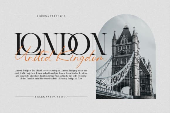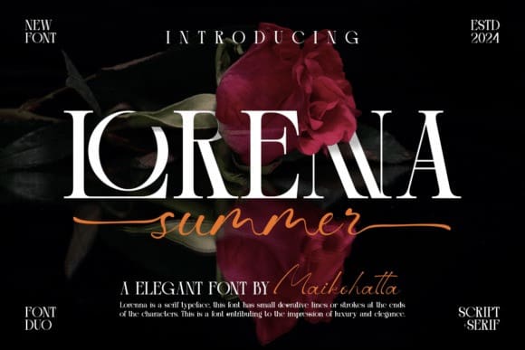 Lorenna Font Duo – This collaboration between serif and script fonts combines the elegance of serifs with the warmth of script handwriting. Serif fonts provide a structured base, while script fonts add a touch of creativity. The result is a contrasting yet eye-catching visual harmony, perfect for conveying messages from formal to personal with a uniquely alluring style.