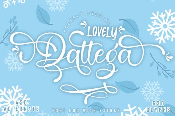 Lovely Dattega Font Duo is a sweet duo font (script and sans). Incredibly versatile, this font fits a wide pool of designs, elevating them to the highest levels. Add this font to your favorite creative ideas and notice how it makes them come alive!