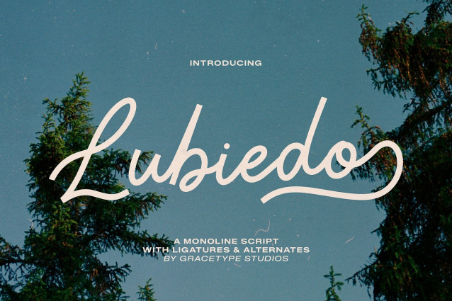 Lubiedo Font| Monoline Script, from Gracetypestudio, suitable for any projects such as: logos, branding projects, homeware designs, product packaging, mugs, quotes, posters, shopping bags, t-shirts, book covers, name card, invitation cards, greeting cards, label, photography, watermark, special events, and all your other lovely projects that need a Script taste.