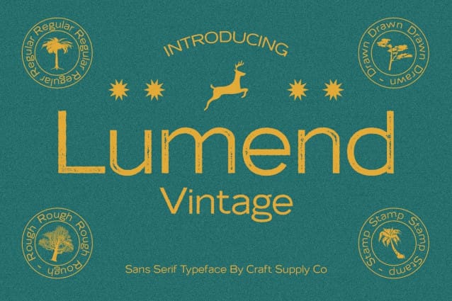 Lumend Vintage Font – Sans Serif Stamp Font. This font is perfect for all your display needs. Lumend Vintage captures the essence of a bygone era with its vintage stamp effect. It exudes a sense of nostalgia, making it ideal for projects that require a classic touch.