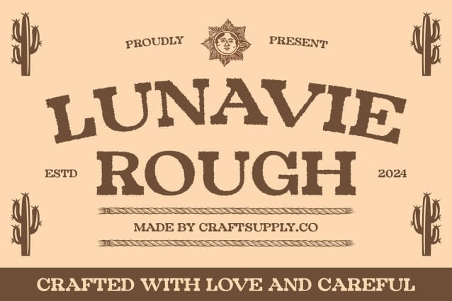 Versatile Design for a Memorable and Edgy Impression Lunavie Rough is ideal for those seeking a font that merges classic serif elegance with a retro edge and artistic texture. Its unique blend of boldness, nostalgia, and rugged charm makes it a versatile choice for a wide range of design applications.