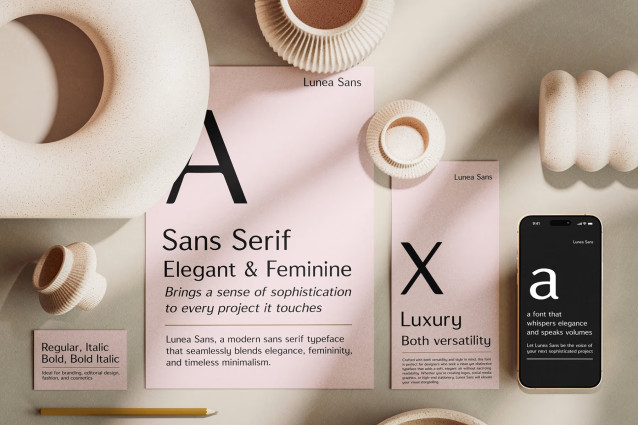 Lunea Sans Font, a modern sans serif typeface that seamlessly blends elegance, femininity, and timeless minimalism. Designed with graceful curves and refined proportions, Lunea Sans brings a sense of sophistication to every project it touches — from luxury branding to wedding invitations, editorial layouts, and beauty packaging.