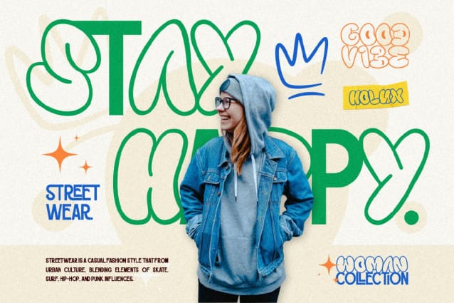 Luneis Bubble Graffiti Font a hybrid typeface that combining the playful bubble graffiti and the simplicity of sans serif. This blends of this font creating a striking contrast between youthful and simplicity. Bubble graffiti evoking sense of energy and spontaneity. The san serif delivers clean lines and contemporary feel, emphasizing clarity and sophistication. Together, they celebrate the fusion of street art and design, also make your project stand out because of the visual creativity and textual communication. Ideal for fashion streetwear, merchandise, social media marketing, poster and many more.