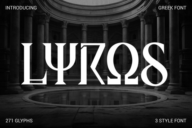 The style of Lyros Greek Font blends classic heritage with a modern display approach. It feels timeless, bold, and heroic, yet remains adaptable for contemporary design needs. The font carries a cinematic and monumental character, often associated with mythology, ancient civilizations, and epic storytelling. Lyros Greek Font works especially well for logo design, branding systems, movie titles, posters, and bold headlines that require a strong identity. It also suits book covers, magazine layouts, packaging, invitations, and promotional materials that aim to convey power, tradition, and prestige. This font supports creative projects related to Greek culture, historical themes, and brands seeking a refined foreign aesthetic. With its sharp serif construction and disciplined structure, Lyros Greek Font offers designers a reliable tool for creating memorable visuals that stand out across digital and print media.