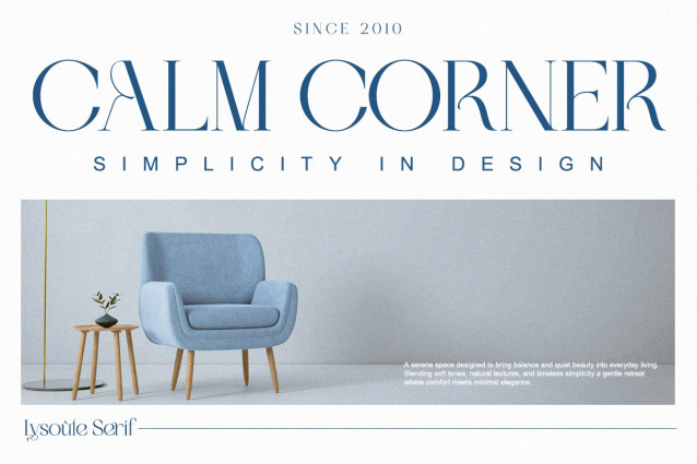 Lysoule Font is a minimal modern serif typeface with an elegant balance of classic charm and contemporary flair. Each curve and ligature flows naturally, creating a sophisticated visual rhythm that’s perfect for logos, editorials, and luxury branding. It’s not just a font — it’s an experience of timeless elegance, created for high-end visual identities.