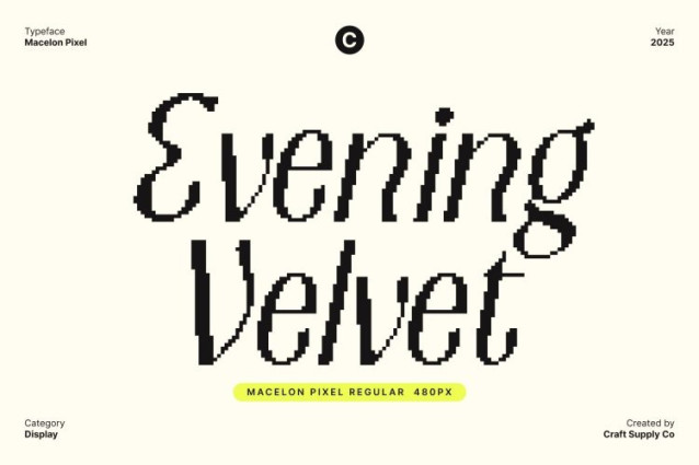 This font is used only for demos (Demo license). If you want to use this font for commercial use please contact: https://craftsupply.co/product/macelon-pixel/