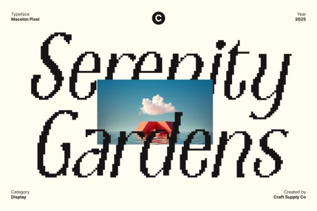 Macelon Pixel Font This is a modern sans serif display font infused with graceful Art Nouveau influences. Its clean, flowing lines and contemporary shapes create a trendy, elegant, and captivating look perfect for designers who want a touch of classic charm blended with modern refinement.