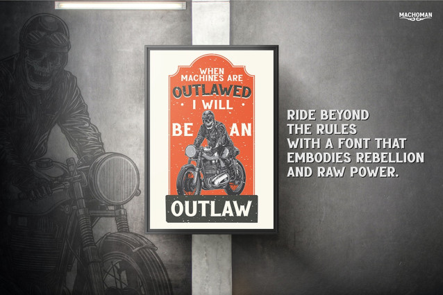 Machoman Font, a retro-inspired font that embodies the spirit of adventure and masculinity!Drawing from classic styles, Machoman brings boldness, action, and strength to your creative projects.Whether for posters, branding, or packaging, this font stands out with its daring and dynamic feel. Perfect for those who want to express courage and an adventurous spirit in every design.