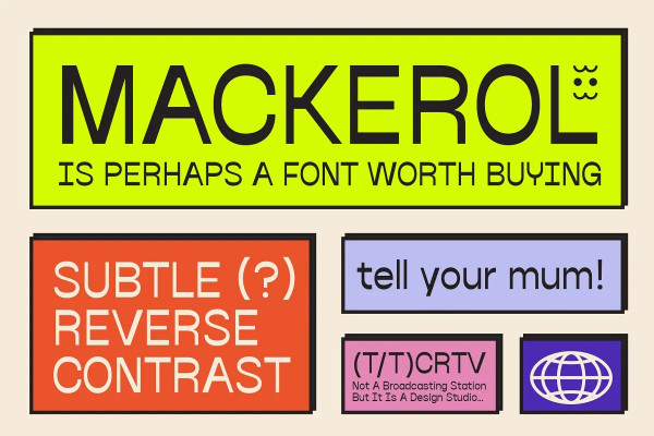 Mackerol Font is a reverse contrast font that is built for titles, display, headlines, and long text. Mackerel is a modern take on a quirky font style that will add a bit of a playful personality to your design. If you are working on branding, logos, magazines, instagram, posters or whatever Mackerol is your guy if you are wanting to get that fun cool payed back personality right.