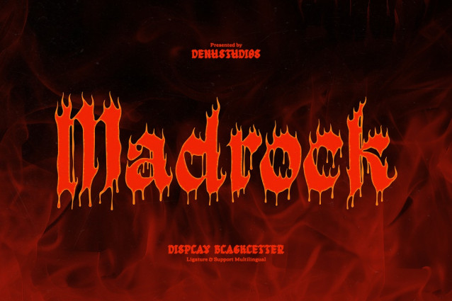 Madrock Display Font | Display Blackletter, from Denustudios, suitable for any projects such as: logos, branding projects, homeware designs, product packaging, mugs, quotes, posters, shopping bags, t-shirts, book covers, name card, invitation cards, greeting cards, label, photography, watermark, special events, and all your other lovely projects that need a Blackletter taste.