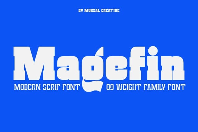 Magefin Font Family is a unique and modern family of serif fonts. Simply Conception has 9 families Regular font, starting from the small thin to the largest Black. This typeface is versatile and can be used successfully in magazines, posters, branding, websites.