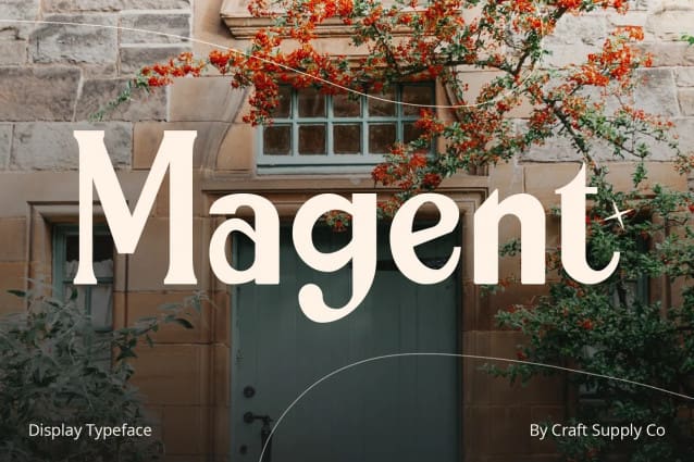 Magent Font – sets itself apart as a striking Display Typeface that seamlessly merges the timeless elegance of serifs with the contemporary allure of sans serifs. This extraordinary fusion not only shatters monotony but also injects a vibrant energy into your designs.