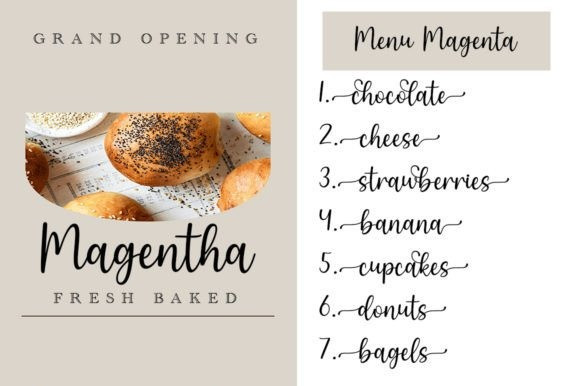 Magentha Chocolate Script Font is a calligraphic script font that comes with beautiful alternate characters. Copperplate calligraphy mixed with hand lettering style, designed to convey stylish elegance. Magentha Chocolate is attractive because it is subtle, clean, feminine, sensual, glamorous, simple, and very easy to read.