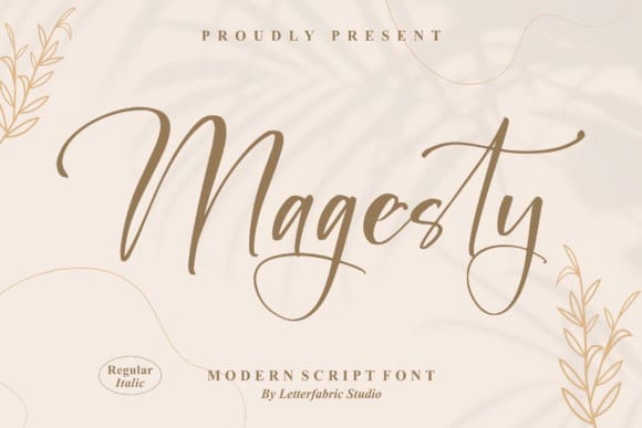Magesty Script Font – Modern Script Font suitable for any projects such as logos, branding projects, homeware designs, product packaging, mugs, quotes, posters, shopping bags, t-shirts, book covers, name cards, invitation cards, greeting cards, label, photography, watermark, special events, and all your other lovely projects that need a beautiful script taste.