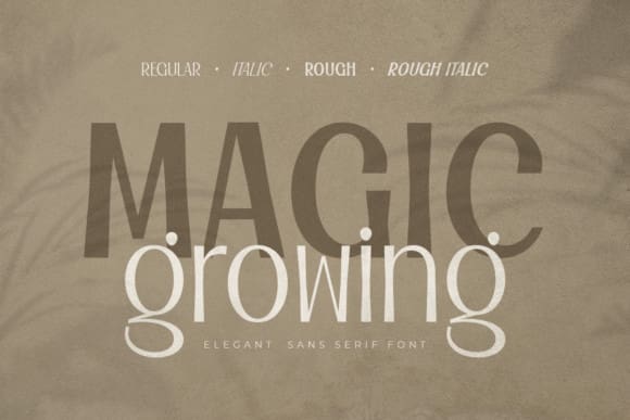 Magic Growing Font, A Sans serif that we created special for elegant branding needs, with extra style will be ready to add value to your brand. It is so nice to leverage designers or product owners who need solutions to make their designs look more elegant and modern.