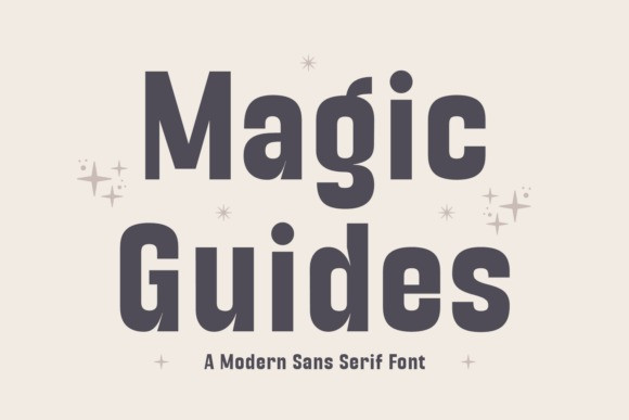 Magic Guides Font is a modern sans serif font with a bold, playful touch and a hint of whimsy. Its clean letterforms are softened by rounded details, while decorative star accents add a magical charm. This versatile typeface works beautifully for children’s books, branding, posters, social media, and creative projects where you want to mix professionalism with a touch of wonder.