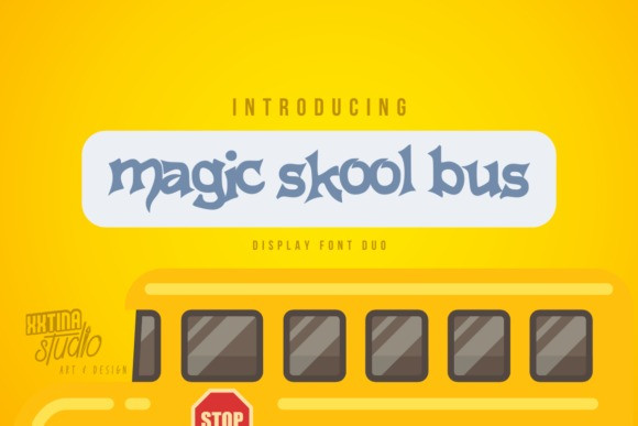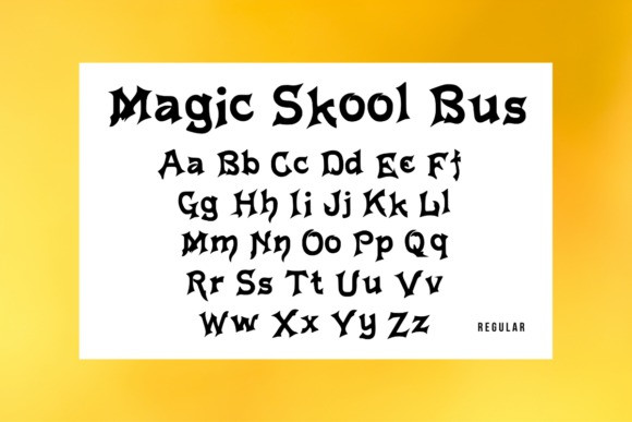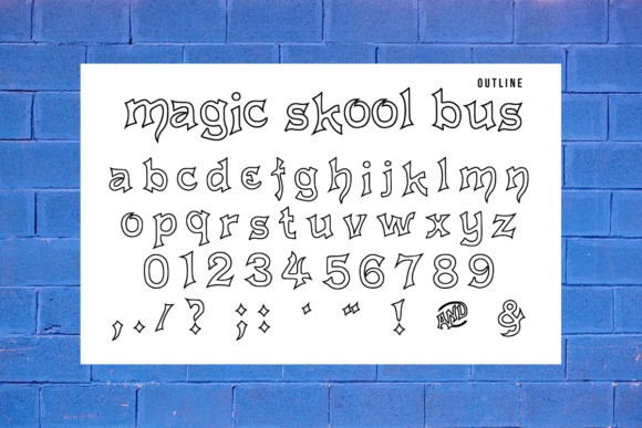 Magic Skool Bus Font is a decorative display font with signature pointy serifs. It contains 74 glyphs that includes characters in regular and outline. It’s the perfect font for creating book covers, advertisements, marketing materials, and other bold creative ideas!