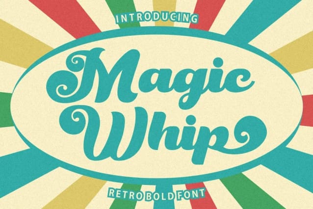This font is made for personal use. Get the full version of the fonts if you want to use it for commercial purposes by purchasing the licenses here: https://creativemarket.com/putracetol/42247876-Magic-Whip-%E2%80%93-Retro-Script-Bold-Font?u=fontlot123