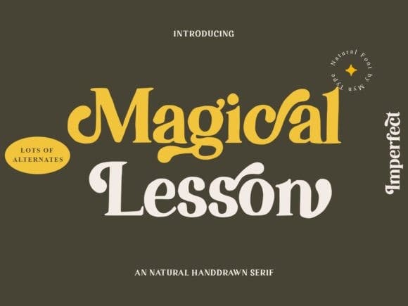 Magical Lesson Font a serif font with a touch of natural hand letter combines the classic and elegant appearance of serif typography with the organic, flowing qualities of hand letter. This unique fusion results in a typeface that bridges the gap between traditional and contemporary design, making it an appealing choice for a wide range of applications.