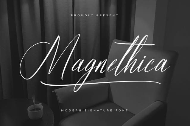 Magnethica Signature Font , from Letterena, is a Luxury Script font, suitable for any projects such as: logos, branding projects, homeware designs, product packaging, mugs, quotes, posters, shopping bags, t-shirts, book covers, name card, invitation cards, greeting cards, label, photography, watermark, special events, and all your other luxury and beautiful projects that need a Luxury Script taste.