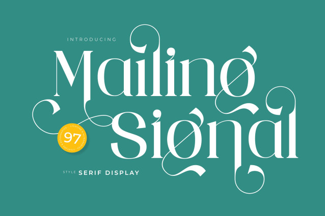 Mailing Signal Font is a refined serif display font that blends Limeless elegance with a modern creative edge. Each letter is carefully designed with bold strokes and delicate curves, cre-ating a perfect balance between strength and sophistication., The sharp serifs and high contrast details give the font, a distinguished presence, making it. both eye-catching and versatile.