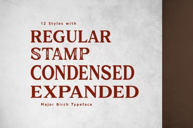 Major Birch Font is a classic and modern font whose style never fades, a touch of stamp style can make this font look more naturally vintage. This font is perfect for logos, product labels, posters, or any design that wants a classic touch.