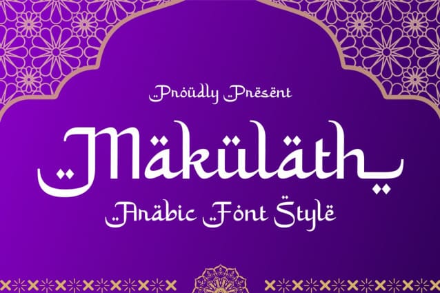 This font is used only for demos (Demo license). If you want to use this font for commercial use please contact: https://creativemarket.com/Sronstudio/92186568-Makulath-%E2%80%93-Arabic-Font-Style?u=fontlot123