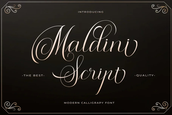 Maldini Script Font is a classic calligraphy font. This is a classic thin font with an italic style. Here you will get a beautiful classic font. This font is available in several modern swirls that can make your work look elegant, sweet and perfect.