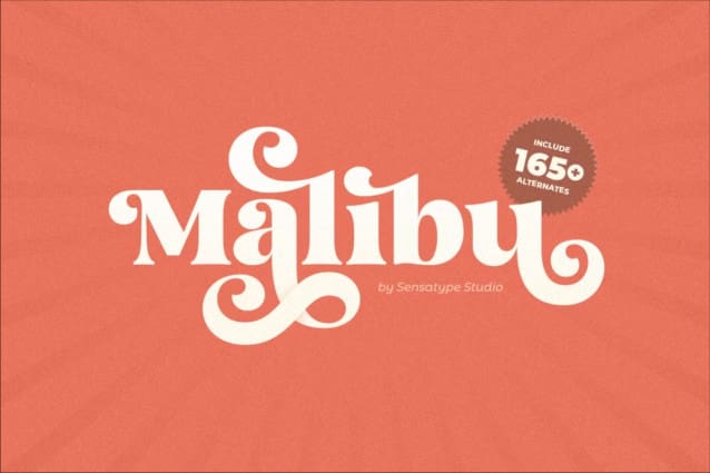 Malibu Font is a well-balanced contemporary font with a fancy, playful, unique, and versatile vintage serif family with 165+ alternates that you can combine to get curves and beautiful shapes easily just in seconds. It is a display font with moderate contrast that perfect for branding projects, logo, wedding designs, social media posts, advertisements, product packaging, product designs, label, photography, watermark, invitation, stationery, and any projects, it makes with a high level of legibility.
