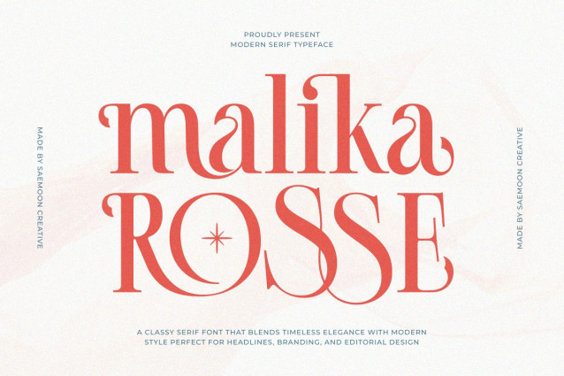 Malika Rosse Font is a modern serif typeface that blends timeless classic touches with contemporary elegance. Designed with precision details, this font delivers a sense of sophistication, luxury, and character, making it a perfect choice for a wide range of design needs.